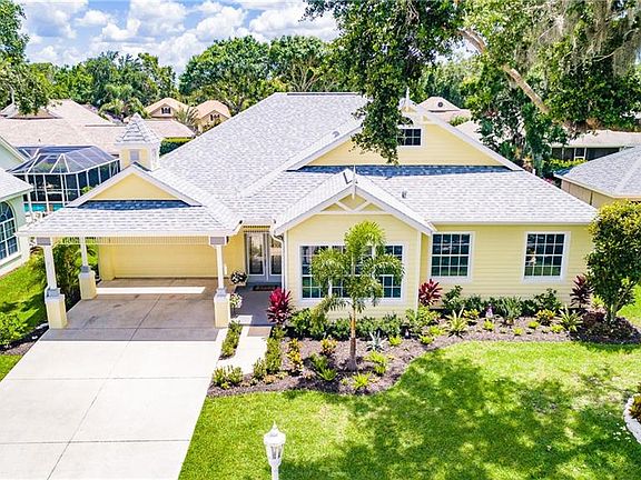 Gorgeous Key West style home in the beautiful Inlets of Riverdale community located along the Manatee River. Spectacular home is in model perfect condition. This home has tons of curb appeal with the gingerbread details and lovely architectural features. Fabulous updated kitchen with stainless steel appliances, a center island,newly updated cabinets, and a built in desk and a charming dining nook. Formal dining room has arches, columns and crown molding and plenty of room to host large gatherings. The great room is wonderful with 2 sets of sliding doors that lead out to the screened pool and lanai. A cozy den/office with french doors is right off the kitchen and has beautiful new porcelain floors. The master suite has a huge walk in closet w bamboo flooring and extra closets plus a spa like bathroom with many updates. A true split plan with two gorgeous guest bedrooms with another full bathroom and laundry room are on the opposite side of the home. The garage is a 2 car plus a 2 car covered parking area. Outside the resort like updated pool with new granite grip decking, newer krystal crete in pool, newer gas pool heater, 2 waterfalls, spa and lighting. Screened lanai area is like a second living space and has tv bracket and cable set up and is a great spot to relax poolside. This home is better than new with a NEW roof w 50 year warranty, NEW AC w UV light, NEW gas hot water tank, NEW paint through out indoors and outside, NEW shutters, NEW irrigation, NEW landscaping & NEW gutters.