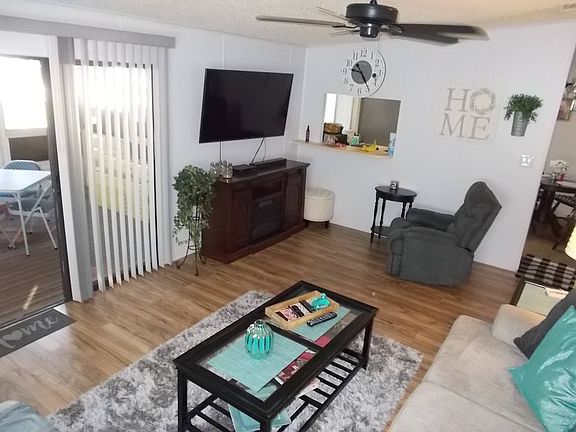 This 2 bedroom 2 bath home has been totally remodeled. New laminate floors throughout, new appliances, and freshly painted interior. Come check this gem out. Outside the home has been pressure washed, new Air Conditioning 2021, lanai off the living room gives you lots space for entertaining, 2nd bedroom has easy access to 2nd bath complete with tub/shower combo, larger master with walk in closet and en-suite bath with walk in shower. Side by side carport parking and large shed for more storage. Inside laundry with washer/dryer. Come see this home and make the home you home away from home. Home has double pane windows throughout. All new screening in lanai.