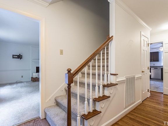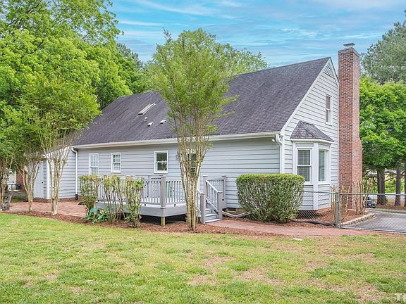 Delightful Home in Apex on .69 Acre Landscaped Lot! Hardwoods in Entry & Dining Room, Crown Molding throughout Main Floor, Inviting Living Room with New Carpet, Brick Fireplace & Built In Bookshelf. Kitchen features Granite counters, Tile floor, SS appliances and Leads out to Deck for Entertaining. Primary Bedroom with Spa Tub, Sep Shower & Dual Sinks, Main floor Bedroom with En Suite Bath, Bonus Room or Office. Flat, Fenced Backyard with Composite Deck, Brick Paver Patio & Shed.