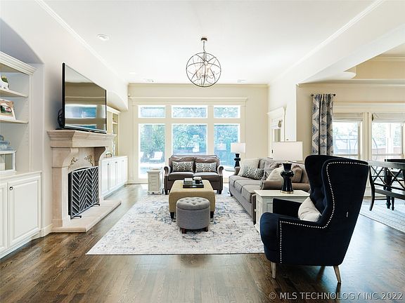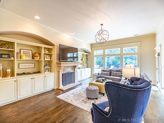 Dramatically situated on 1/3 acre lot in GATED STONEBRIAR w POOL. 5BD/4BA+2 Half BA/3CAR. JENKS SE ELEM. Hardwoods thru 1st floor. 2-story entry opens to Dining, Study & Kitchen. Family w/FP built-ins & wall of windows overlook private backyard oasis w HUGE cov. patio, POOL & HOT TUB. Upgraded kitchen w island, pantry, coffee bar, granite, SS Appliances w/ gas cooktop. Sep Game & Media Rms. Master Suite to spa-like Bth w sep. vanities, glass encl shower, soak tub &LG walk-in closet w access to outside HT