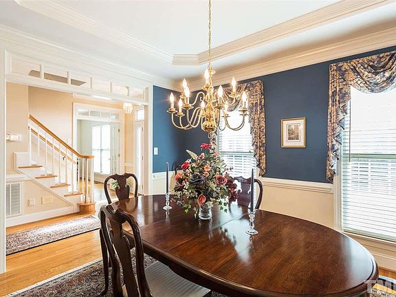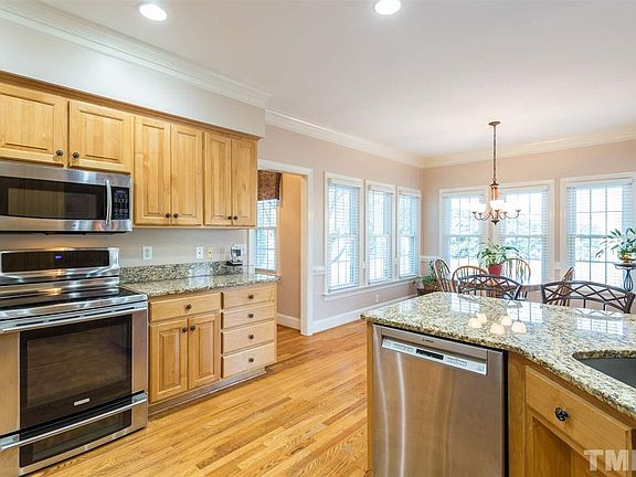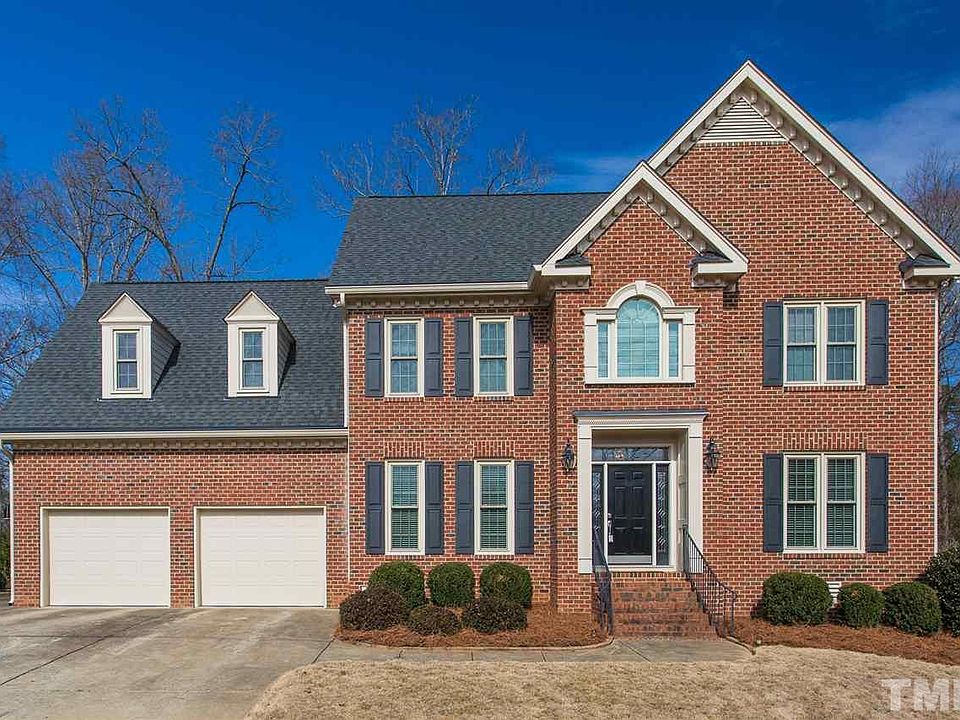 Classic elegance meets pristine West Raleigh living! Meticulously maintained by original owners, this brick-front beauty features hardwood floors on main level, double crown molding, wainscoting in family rm, & tray ceiling in formal dining. Butler's pantry w/ wine rack. Inviting kitchen w/ SS appliances, peninsula, & granite. Second stair to bonus from kitchen. Dual master WICs, oversized 2-car garage w/ utility sink, yard irrigation, basketball court. NEW carpet upstairs! Roof, Windows replaced in 2011.