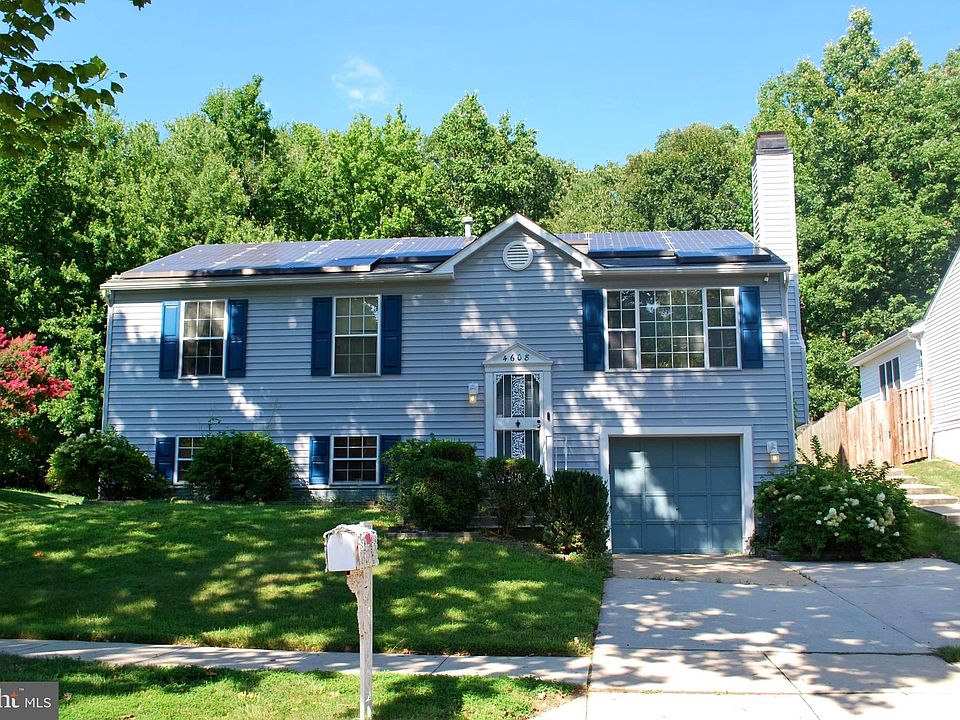 This is a rare opportunity to purchase a home in the Skyline Hills community in Suitland. This split foyer has 4 bedrooms, 3 full bathrooms, one car garage, and solar panels. The kitchen features black granite countertops, oak cabinets, tile flooring and gas cooking. The living room has a wood burning fireplace and vaulted ceiling for additional height. The dining room leads to a large rear deck that is perfect for entertaining guests and enjoying the outdoors. The upper level owner's suite has two closets and a bathroom with soaking tub. The lower level features a large family room, bedroom, full bathroom, and access to the garage. This home is conveniently located near shopping centers, restaurants, and major highways.