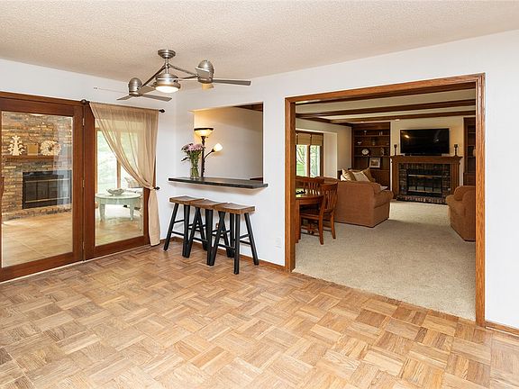 Beautifully, well-kept 5 bedroom 2 story in Western Hills Elementary/Stilwell Jr High/Valley High School location! Entering you're greeted by front entryway and coat closet. Living room off entryway is large and open to formal dining area. Kitchen is spacious with HUGE pantry, all appliances included, ample cabinet storage and views of your backyard. Informal dining area off kitchen that is open to your 2nd living area with builtins and cozy, brick fireplace. Sunroom off dining area is bright and airy with sliding door to your outdoor oasis. Large patio under shade trees, fully fenced, and beautiful landscaping. Upstairs you'll find 4 bedrooms centrally located around large hall bathroom with double vanities and 2nd level laundry room! Primary bedroom is large with 2 walk in closets and HUGE primary bathroom with double vanities and ample storage. One of the other bedrooms has double closets as well! LL is finished with another living space, ample storage closets, full bathroom, flex space for exercise equipment, toys, etc. and 5th bedroom! 2 Car garage with shelving. Prime location on a street with minimal traffic, near all the shops and restaurants West Des Moines has to offer. Come see today