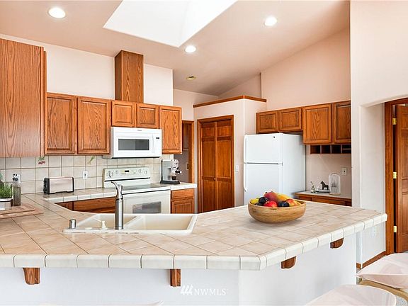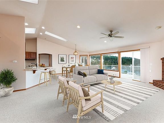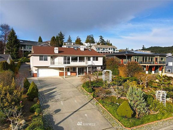 Enjoy picturesque views from your very own front deck on beautifully kept grounds. Plenty of room to spread out with 5 bedrooms and 3 baths with spacious, open concept living areas adorned with skylights for ample natural light. Fully finished basement adds a great flex space to make it your own. Main floor features sky high vaulted ceilings to highlight the walls of windows overlooking Burrows Bay. Cozy on up to the brick fireplaces over the chilly winters with your favorite hot beverage. You'll never have to worry about space for parking with your 2 car garage and long driveway with extra parking in the back. Come explore the great location - only minutes from Anacortes Airport, Ferry Terminal, parks, beaches, and more. Welcome home!