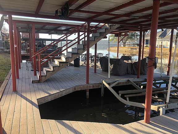 What a great Lake House! Located on a lot and a half on a deep canal, just a stone's throw from main body water this property boasts an all new boat dock with approx 10 ft of water underneath it that will accommodate a wake boarding boat with the tower up, plus 2 jet skis. And don't miss the upper deck of the dock or the second upper deck off the master for sunbathing and enjoying the view. Home features include a Game room with wet bar, all new windows, new carpet and HVAC, oversized garage, motor home parking with 30amp power connection. If you like to entertain guests, this is the place for you, So bring your water toys & your tooth brush because this one comes fully furnished & is also available for lease.