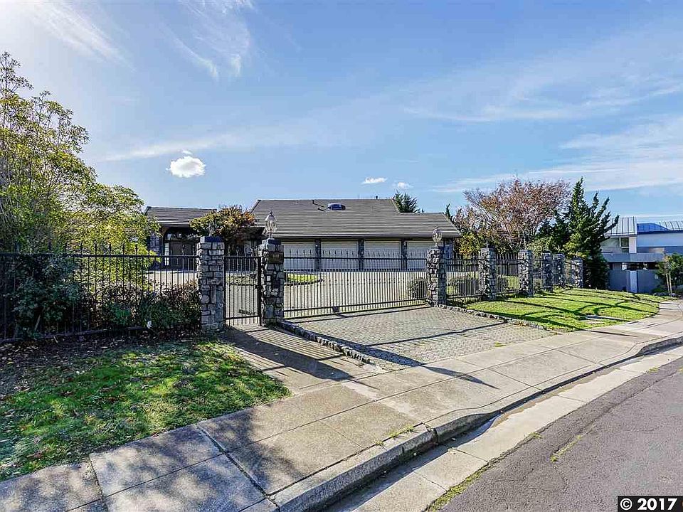 Gated Estate with sweeping San Francisco Bay views and extraordinary features! Very Large Home with grand entrance and foyer, 4 bedrooms each with their own full bathroom, there is also a half bathroom for guests, extra large living room with a double-sided fireplace and entertainment room that has surround sound, and wet bar that has a wine refrigerator. Stairs lead up to the in-law unit which has a kitchenette and a separate storage room. Formal dining room, extra large kitchen has Jennaire cook top and an indoor barbecue, breakfast nook and a refrigerator. Laundry room includes the washer and dryer plus a pantry. Main master suite has a gym area and double-sided fireplace. Master bathroom has a sunken tub and jets, a slide into the pool, a refrigerator and microwave, and a walk-in closet. There is an indoor swimming pool and built-in spa with Japanese waterfall and atrium. Expanded 4-car garage plus RV parking and a separate workshop. Very Private.