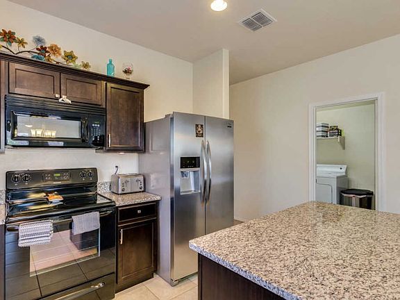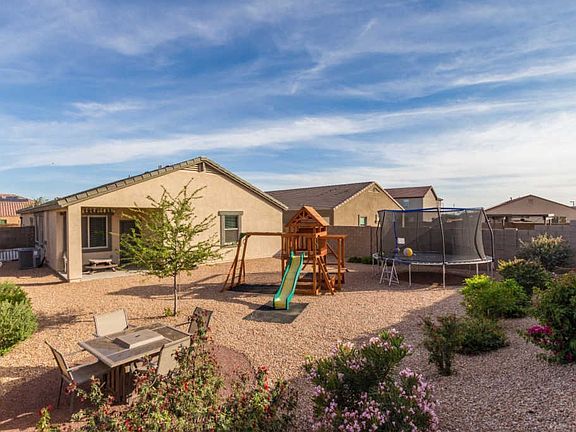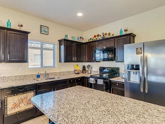 Immaculate, barely lived in home! This beautiful homes offers a 4 bedroom, 2 baths with a great open floor plan. The spacious kitchen offers dark maple cabinetry with crown molding & upgraded hardware, granite countertops, black appliances, stainless steel refrigerator, kitchen island with breakfast bar & double door pantry. Your master bedroom has a walk-in closet & private bath with dual sinks, oversized shower & storage shelves. Other features front patio, ceiling fans in all bedrooms, large laundry room with shelving, ceiling fans in great room & flex room, window coverings throughout, single french door to your covered patio, and large beautifully landscaped backyard! Come see it for yourself!