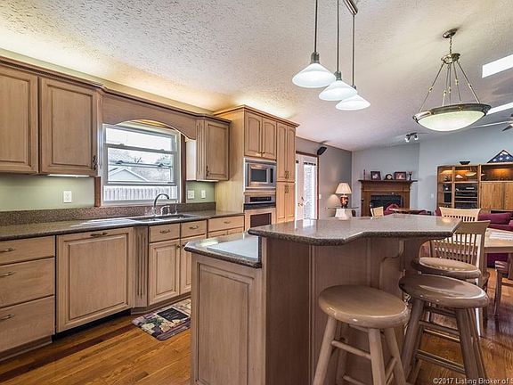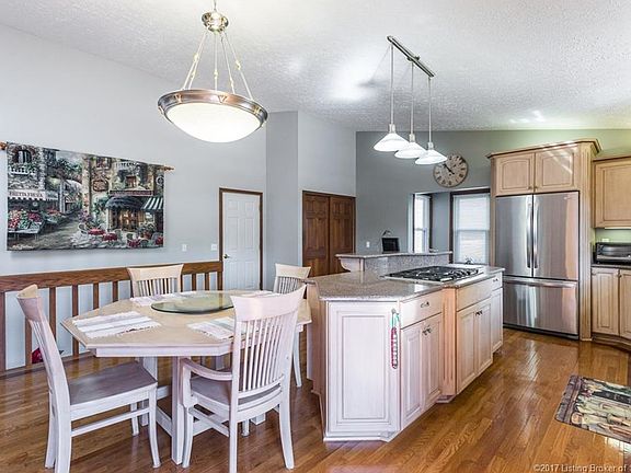 This 3 bed, 3 bath beautifully maintained home located in Floyds Knobs has everything you have been looking for! Featuring hardwood floors throughout, fireplace and skylight in living room, this home is bright & beautiful. Kitchen is a cooks dream with beautiful top-lit cabinets, granite counter tops, built in oven and microwave, island with gas cook top and bar seating. Master bedroom features hardwood floors and large en suite master bath. Hosting gatherings is a breeze with the spacious finished basement complete with a wet bar area with plenty of cabinet space for extra storage. Looking for some backyard fun? Step out from the living room onto your back deck and access the sparkling in- ground pool, fended for your privacy.