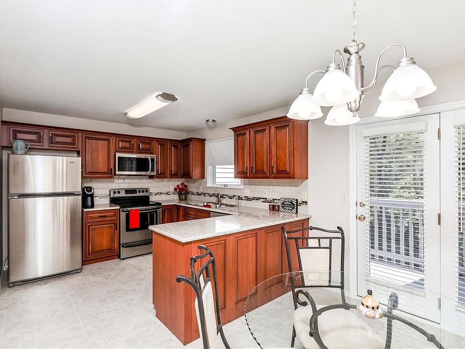 Two bdrm, 2.5 bath Townhouse. Family rm w/ built in shelving & 2 lower pull out shelves w/ doors plus newer carpeting. Fully remodeled Kitchen & dining rm includes hand made custom cabinetry, upgraded vinyl flooring, solid surface countertop, tile backsplash, light fixtures, dishwasher & microwave plus lg pantry w/newer shelving. Laundry conveniently located on main floor w/ newer shelving & hooks for your brooms/mops. Half bath on main floor fully remodeled includes custom cabinet w/ one piece counter/bowl, toilet, flooring, mirror, & light fixture. Newer carpeting on steps leading to 2nd story. Newer Laminate in the loft area. Master bdrm w/ his & hers walk in closets. Remodeled bath to include custom vanity & 1 piece bowl/counter, flooring, mirror, lighting, & shower doors. Bdrm #2 is en suite w/newer vanity/bowl. Deck thru French Doors in Dining Rm. backing to a row of Mature trees. Lower Level for storage. Two car garage w/ insulated O/H door, 220 electric & nice storage shelves.