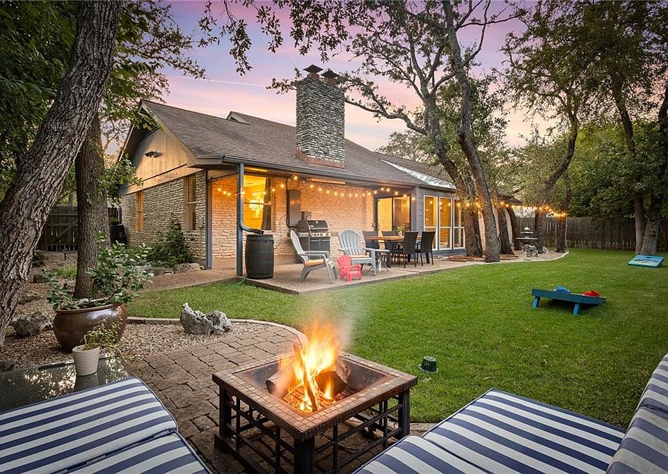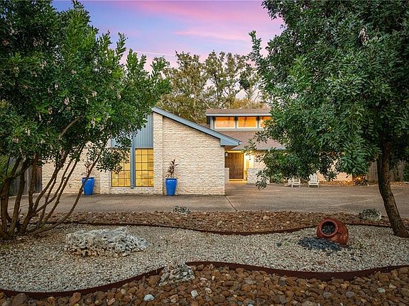 MULTIPLE OFFERS RECEIVED -- Best and Final due by 10 AM Sunday 10/18. Gorgeous single level midcentury home brings endless charm and character in the highly sought after Travis Country neighborhood. This home boasts: vaulted beamed ceilings, cedar posts, saltillo tile floors, two stone rounded fireplaces (fireplace in the master!), double door front entry, upgraded kitchen / baths, and more! Spacious mother-in-law floor plan offers 3 bedroom 2 bath, an extra flex space perfect as a morning-coffee sunroom, extra home office or kid's playroom; plus a large indoor utility room. Inviting backyard retreat ideal for evening entertainment or a game with friends on the bocce court under the twinkle lights and mature trees. Raised garden beds with great light for summer and winter vegetables. Low maintenance xeriscaped front yard with the only circular driveway in the neighborhood. Nestled in the quiet sought after community of Travis Country - full of lush trees, top ranked schools, a trail that connects this neighborhood through the greenbelt to Austin's Barton Springs PLUS community amenities including 2 pools, tennis courts, wildflower center, community gardens and two playgrounds! Only 2 exits to downtown while simultaneously in the heart of hill country... this neighborhood has it all!