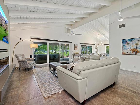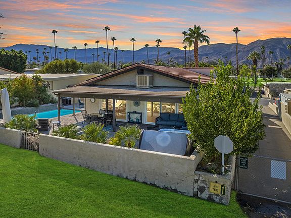 Mid Century Modern free standing home on the third hole at the historic Shadow Mountain Golf Course! Modern linear electric fireplace, central A/C, leased solar, open floor plan. Smart controls HVAC, pool garage and front door ring.No HOA golf course home! Remodeled golf course home with Spectacular chefs kitchen! Newly remodeled kitchen has beautiful quartz counters, stainless appliances and gorgeous backsplashes! Enjoy indoor outdoor living with commercial grade misters, recently plastered pebble sheen saltwater pool and free standing hot tub with sweeping mountain views, Updated 3 bedroom 2 bath home with 2 car garage. Very quiet area, enjoy the ultimate resort living! Close to shopping and restaurants on to El Paseo!