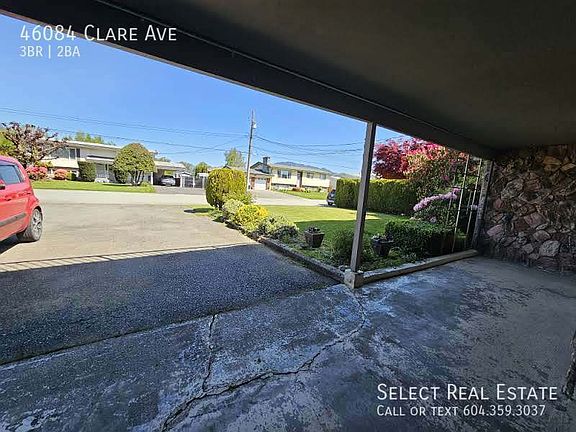 Address: 46084 Clare Avenue, Chilliwack, BC V2P 6M8 Date Available: May 1st, 2025 Description Great pet friendly, family home in very desirable Fairfield Island location! This upper suite features 3 bedrooms, living room, kitchen, & dining room that leads onto a wrap around deck. There is a carport and single garage which is useable for storage, as well as large private fenced backyard. Come and see this home in an excellent location! Lease Details Lease duration: 1 Year Deposit: Months Rent. Pet Deposit: Months Rent. No Smoking Property Details Bed: 3 Bath: 1.5 SQFT: 1219 Pet Details Pets(Yes/No): Yes Type Allowed: Any Number: 2 Size Restriction: None Exterior Details BBQs allowed(yes/no): Yes Parking type and how many: Carport + Left side of Driveway (3 spaces total) Yard Usage: Private Yard Yard fully fenced: Yes Shed Or Shop Usage: Yes (Garage) Appliances Included Fridge: Yes Range: Yes Dishwasher: Yes Microwave: Yes Washer/Dryer: Yes Shared Laundry: No Pay Laundry: No Fireplace: Yes - Does not work Air conditioner: No Standalone freezer: No Utilities Gas: 70% Tenant Hydro: 70% Tenant Internet/Cable: 100% Tenant Water, Sewer, Garbage: 70% Tenant Utility Type Heat Source: Forced Air, Baseboard Heat Septic/Sewer: Sewer Water Source: City Tenant Responsible for Septic pumping: No