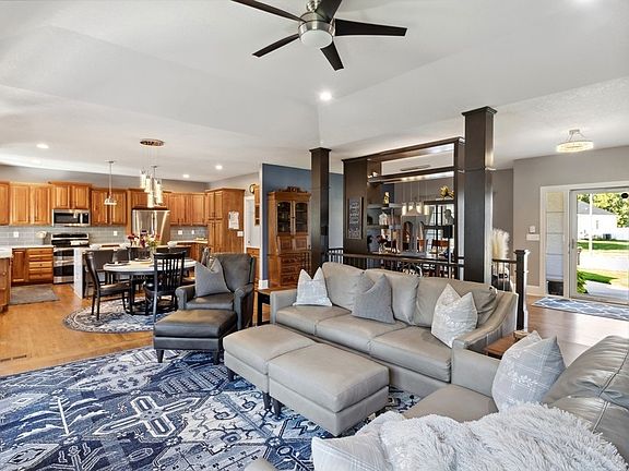You are going to love this 5bd/3ba ranch-style home in Urbandale within the Johnston School District! Sitting atop 1/3 acre of a beautiful lot, this updated home has hardwood floors on both the main and the lower level. The main floor has nearly 2,200sf and includes 3 bedrooms and 2 full baths. The owner’s suite has a large en suite and walk-in closet. The kitchen has a large island, quartz countertops and stainless-steel appliances, with a dining area that leads to a wonderful 4-season room. The main also includes a formal dining/sitting room. Lower level is an entertainer’s dream with an amazing wet bar. This level also includes 2 bedrooms, a ¾ bath, and tons of storage. Great front porch, serene composite deck area, full-lot irrigation; and 3-car tandem garage, great for that third car or spacious workshop/storage area. Appliance package includes 3 refrig/freezers, wine fridge, 2 dishwashers, 2 microwaves and wash/dryer. New HVAC being installed 10/2023.All information obtained from Seller and public records.