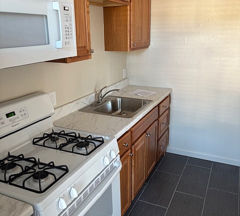 Second floor studio with great light in a security building. Completely remodeled including new cabinets, new gas stove, refrigerator and microwave. Tile flooring in kitchen and bath, vinyl main room flooring. New bath with tub/shower, vanity and vanity mirror. Ceiling fan; gas heat. All utilities included in rent except electricity. Close to shopping, schools all transportation options. No onsite parking. Section 8 residents welcome. One year lease. no application fee. All utilities except electricity paid by landlord. No onsite parking. No smoking, Section 8 Welcome