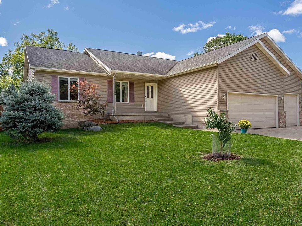Enjoy easy living in this move-in ready east side ranch with a fenced-in back yard. An open concept main floor with cathedral ceilings, gleaming wood floors, a wall of windows overlooking the yard, & an open stairway to the lower level creates a bright & airy space. The spacious primary suite is on the main level, along with two other bedrooms. The finished lower level has a large carpeted rec room with enough space for a cozy area to watch your favorite shows, as well as plenty of room for playing. It also has a fourth bedroom which can double as an office, hobby room, exercise room, etc. The yard features a patio off the kitchen which is great for al fresco dining. The oversized 3rd garage stall includes a built-in workbench & excellent storage. Walk to parks, shopping, etc.