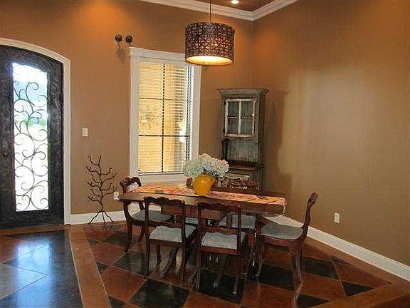 This gorgeous Sugg home is truly a must see. In this European style home you are greeted by large double iron entry doors. You will find acid stained scored concrete floors throughout the home, except upstairs in the bonus room (which could easily be a 4th bedroom) there is handscraped hardwood. The living room and hearth room both feature a stone accented wood burning fireplace. There is a sunroom off the back of the house that is not heated & cooled & is not included in the homes square footage.
