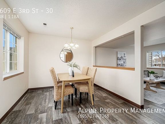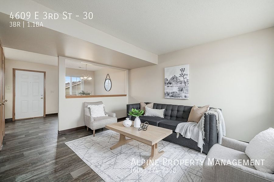 Rent Special - $700 Off First Full Month's Rent on a 12 Month Lease!! Schedule a showing today for this spacious 3 bedroom/1.5 bath townhome on the east side at 4619 E. 3rd St. in Sioux Falls, SD!! The main floor consists of a nice sized living room, formal dining area with vinyl flooring, and kitchen equipped with refrigerator, stove, and dishwasher! There is also a half bath as well as pantry storage and extra storage in the utility room. Upstairs you will find the very spacious master bedroom with walk-in closet. The two guest bedrooms and full bath with tub shower are also upstairs and extra linen storage in the hallway. The townhomes also include central heating/cooling, on-site laundry facilities, and off-street parking! * Detached garage included with rent! - Pet Friendly (2 max) and non-smoking - $50 application fee per adult - $500 security deposit - Lawn/snow care included with rent! - Tenants pay all utilities (water and garbage billed to tenant through RUBS utility share program) - Alpine Benefits Package included for $25/month! (see website for full details) - Section 8 accepted and renter's insurance required Professionally leased by Alpine Property Management Available For 6 18 Month Lease Terms! Back Patio And Yard Central Heating/Cooling Formal Dining Area Lawn And Snow Care Lawn And Snow Care Provided Move In Special $700 Off First Full Month's Rent On A 12 Month Lease! Non Smoking On Site Laundry Online Tenant Portal Pantry Storage Pet Friendly Single Stall Garage Included With Rent!! Stove Tub Shower Walk In Master Closet