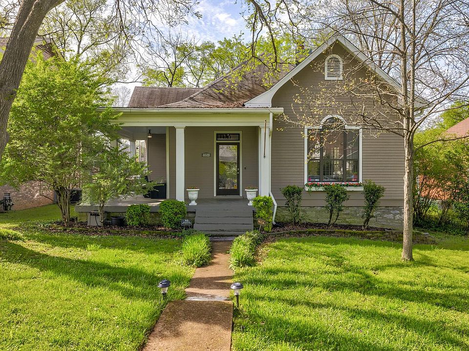 This adorable 3 bedroom, 2.5 bathroom Victorian home is nestled amongst mature landscape and trees in the heart of Sylvan Park. It features a front porch swing, hardwoods, 10 ft ceilings, a bay window and an open living space, separated by a floating stone fireplace. The spacious kitchen boasts granite countertops, stainless steel appliances, a glass cooktop, a center island with seating and an abundance of cabinets for storage. Just off the kitchen is a screened-in sun porch with a TV, overlooking the backyard and a fire-pit. With two primary suites to choose from, you have the ability to be upstairs or downstairs, both with an attached bath and closet space.
