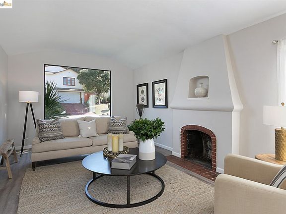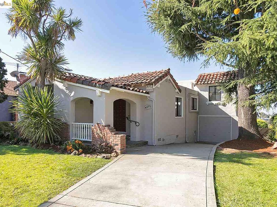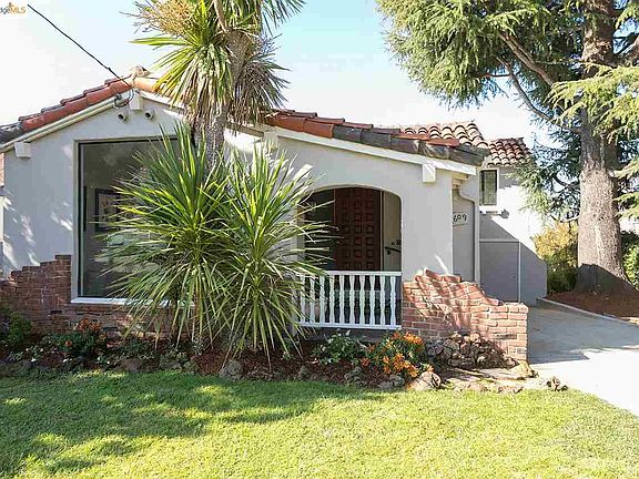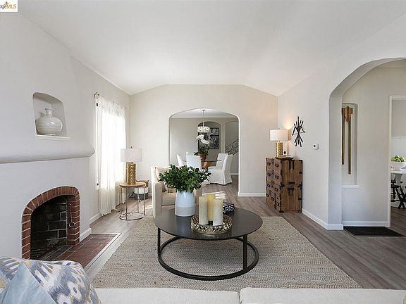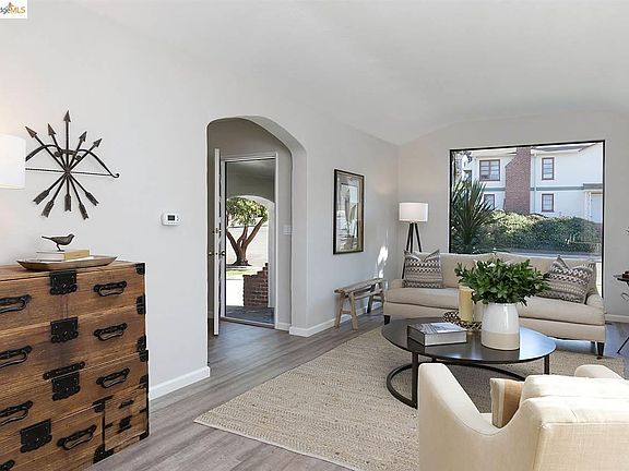 Sunny and bright 2 bedroom Mediterranean, recently renovated, offering all the right spaces for comfortable living and entertaining. Built circa 1936, this adorable bungalow features charming period details, elegant archways and views of the San Francisco Bay. The result is a truly happy place to call home.The inviting living room with brick fireplace and floor to ceiling window. Elegant dining room with coved ceiling. Updated kitchen with stone countertops, 5-burner gas range, newer stainless appliances & sunny eat-in breakfast nook. The full bath and 2 bedrooms, each with Bay views and walk-in closets are upstairs. A few steps down from the kitchen is the spacious family room with half bath. Wonderful rear yard with brick patio for outdoor entertaining, turf for play and shed for the gardening enthusiast. 1 car attached garage with interior access and long driveway with parking for add'l cars. Close to Redwood Heights Rec. center, shops,restaurants, public transit & freeway access.