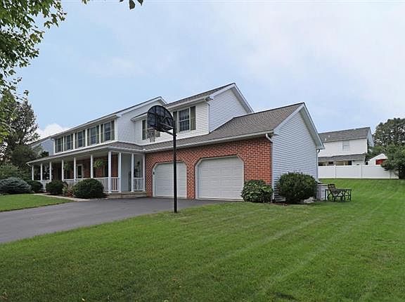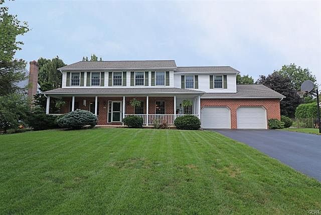 Enjoy pride of home ownership in this custom built 5BR/2.5BA colonial in highly desirable Pointe North subdivision of Hanover Township.Perfect location, close to everything, & a short walk to Hanover Elementary,Hanover Township Park & Wegmans. You'll fall in love w/ the one of a kind, extra-wide front porch, perfect for those fall nights sitting out.The 1st flr features beautiful hardwood flrs w/ the large open concept kitchen/living room, w/wood burning brick fireplace,as well as a formal dining rm, bonus office/living area & mudroom off the porch & garage. 2nd level offers 5 BRs,including master suite w/ private bathroom, & walk-in closet,large 18x15 BR over the garage, & convenient laundry chute to basement. More:fully-finished, 1000 sq. ft. basement w/ wainscoting, & carpeting; useful 2nd entrance to basement from garage; expansive backyard & deck, w/ retractable awning, & extra wide garage w/ shelving for storage. 1 Yr Home Warranty.Don't wait, schedule your private showing today!