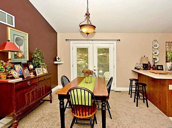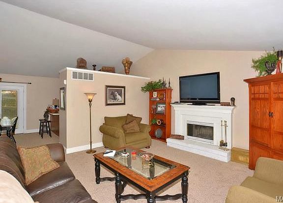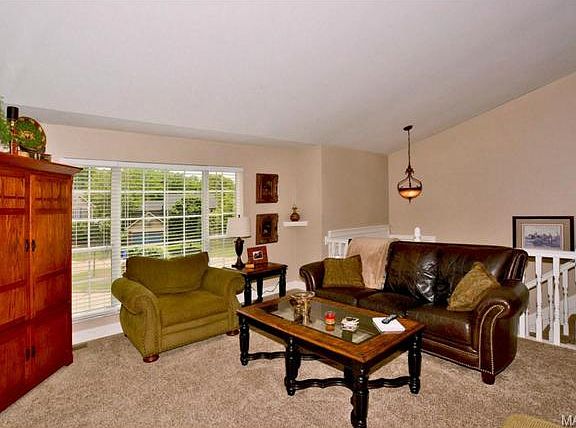 Ready to move in! New carpeting throughout home. This wonderful split level home with three bedrooms and 2.5 baths with vaulted ceilings, open floor plan and plant shelves and a bay window Great room and Master Bedroom suite. The great room features a picture window, balcony overlooking the entry foyer and an inviting brick wood burning fireplace. the Great room is open to the Dining room. Kitchen, with breakfast bar is open to Dining room and walk out to patio in private fenced-in back yard. Lower level offers additional living space and 1/2 bath with access to the oversized two car garage. This home is located at the end of a cul-de-sac in the Hilltop Subdivision with access to two lakes, tennis courts and a club house and swimming pools in the Rockwood School District. Retaining wall in back yard to be replaced before the end of March (weather permitting)