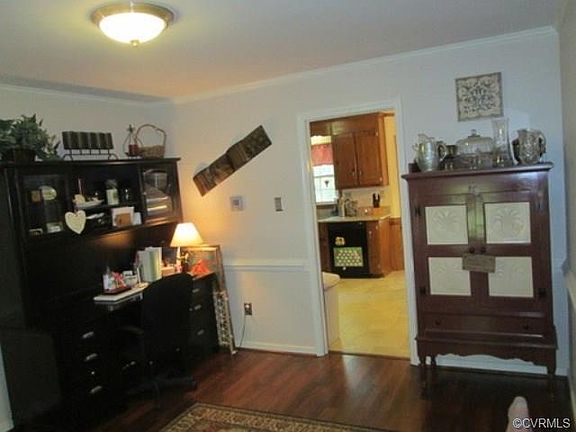 Granite counters in the kitchen and both bathrooms, plus tile flooring and custom Master Tile Shower with Glass Door! 3 Bedroom 2.5 bath Transitional located on a cul-de-sac street in central Chesterfield. Wood laminate flooring and crown molding in living and formal dining rooms. Brick wood burning fireplace in family room. Spacious eat-in kitchen with bay window. Large master bedroom with walk in closet. Bonus room adjoined ideal for office or storage, plus a walk-up attic for additional storage. Large fenced backyard with deck! Heat Pump is used for all-electric heating and cooling!