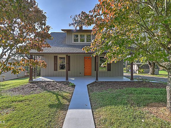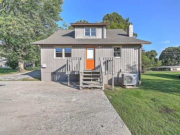 Renovated, Rustic-style Bungalow with MASSIVE Detached Garage in the Indian Springs area of Kingsport, TN. Sits on a large, level and usable 0.7 ACRE LOT off Old Stage Rd. Tons of Curb appeal with the Rustic inspired Cedar siding, front door and covered front porch with concrete walkway. Plenty of parking, concrete parking pad, matching Outbuilding/Shed and an Oversized 28ft. x 30ft. Detached Garage with electricity and plumbed for an Utility sink, offering TONS of opportunity for Storage, Workshop, Etc. Inside, you'll love the cohesive style throughout! Formal living room upon entering that flows into the ''Den'' or Dining room with brick fireplace and Open Kitchen with wood cabinets, granite counters, shiplap backsplash and matching Stainless Steel appliances. One bedroom on the main level with double closets, along with full bathroom with bath/shower combo and spacious Utility/Laundry room that leads to the sweet back deck. Upstairs, you'll find 2 additional Bedrooms, 2nd Bathroom with stand up shower and a ''flex'' space that could serve as a 4th bedroom, Office, playroom or whatever your family needs it for! All bedrooms have an oversized closet too! Plus a small unfinished basement area for additional storage. Multiple updates throughout including New Roof, New HVAC, replacement windows and more!