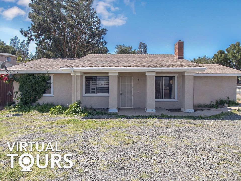 Every REX home comes with a 30-day buyback guarantee. Terms and conditions apply. HUGE LOT with MOUNTAIN VIEWS situated on 17,860 sq feet of land! This single-story home features 3 bedrooms, 2 baths, a bonus room and 1,218 square feet in Jurupa Valley, just minutes from Rancho Jurupa Park, schools, shopping, restaurants, and with easy access to SR 60! The interior features an open floorplan with a light & bright living room, complete with polished concrete floors, ceiling fan, cozy gas fireplace, and a large picture window that floods the space in natural light. Off the living room is a spacious eat-in kitchen with tile flooring, smooth surface countertops, recessed lighting, GE gas stove & built-in microwave, and a dining area with sliding glass doors overlooking the backyard. All of the bedrooms are generously sized with polished NEW carpet floors (installed after photoshoot) and ample closet space. Master features a walk-in closet and en-suite bath with tile flooring and a walk-in shower. Central A/C. Security system is installed and active. Wired for Ring security cameras. The expansive backyard offers a variety of fruit trees, large covered patio, chicken coop, children's play structure, and lots of potential to create your own private oasis! Come see this property today! Buyers can view home in person while practicing social distancing. Or join a live video call with an agent and walk through the home.