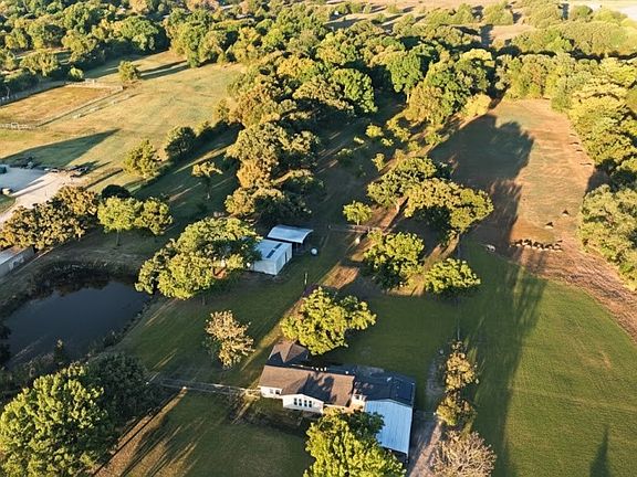 Country living in the city limits. Property is Ag Exempt. Beautiful 9.4 acres with a pond, shop, country home, and pecan orchard. The home is 3 bed 2 bath with an office. Large open kitchen with granite countertops. Spacious living and lots of storage throughout the home. The 30x60 shop is wired for work and ready to use. Home was completely renovated in 2011 with Engineered Hardwood floors, all exterior wall insulation was replaced with new energy efficient insulation, new paint, new electrical panel with new wiring throughout. Home also comes with an active Tesla Powerwall and two large Solar panels. Spring of 2025 the foundation was redone with a Lifetime Transferable Warranty. 2 acres of the property is fenced with 6 foot Chain-link fencing with concrete bottom rail.