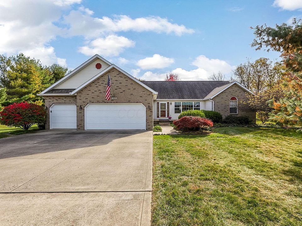 Experience the beauty of this sprawling ranch home nestled on 2.6 acres, featuring a three-car garage. With 3 bedrooms and 2 1/2 baths, this home offers the flexibility to convert a first-floor den into a fourth bedroom. Enjoy the convenience of first-floor laundry and an impressive owner's suite, complete with a spacious custom walk-in closet and a lavish bath that boasts a whirlpool tub, dual sinks, and an upgraded shower. A generous bedroom connects to a Jack and Jill bath, while the finished lower level provides ample space and a workshop for all your needs. Outside, delight in the manicured landscaping, a deck with an automatic awning, and a 12x20 shed equipped with electricity, making this property a perfect blend of comfort and functionality