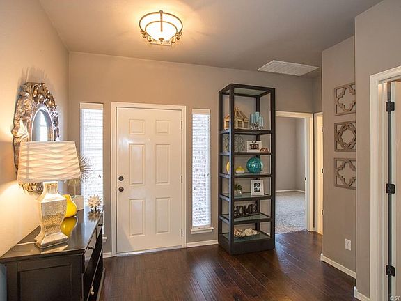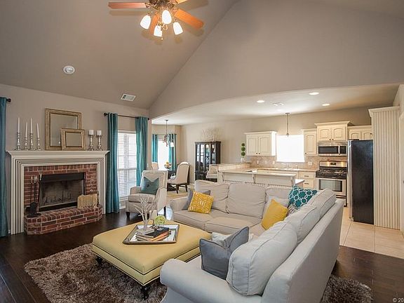 Pottery Barn Style w/dark wood floors in living area. Amazing floor plan open to kitchen w/tons of cabinets/counter surface. Brick fireplace, Stainless appliances, breakfast bar w/seating. Spacious utility rm. Neighborhood pool, clubhouse, park & trails
