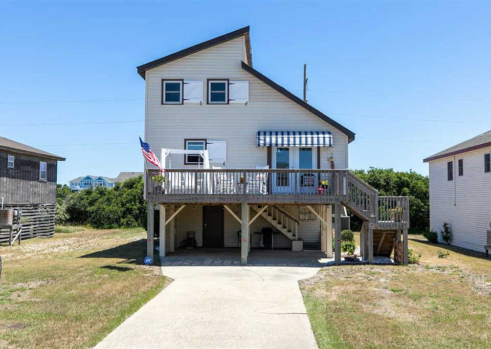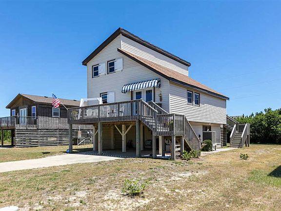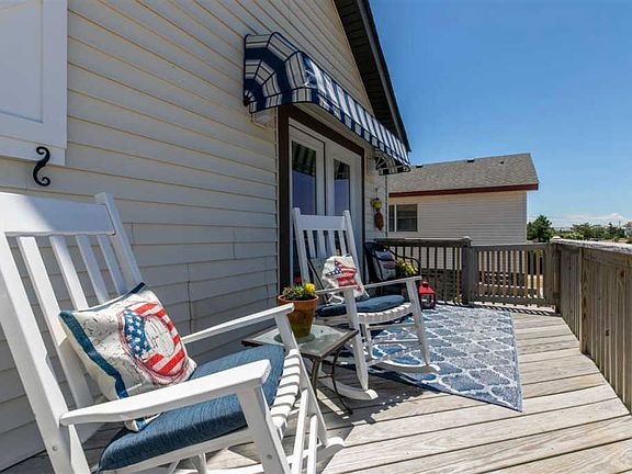 Impeccably remodeled and updated home with ocean views in Nags Head. New kitchen, decks, roof, HVAC, windows, appliances and electrical/plumbing updates in 2014. New floors, dishwasher, storm resistant double front entry door, awning, and custom lighting in 2016. As soon as you walk into the home, the wood-grain ceramic tile floors make the home stand out. The remodeled kitchen has custom wood quiet-touch cabinets, granite countertops, pantry, stainless steel appliances including double oven and french door refrigerator. The tall ceilings in the main room let in ample light. There's also a dry entry, a great feature on those rainy days. The bedroom on this level is large, with a nice-sized closet that has adjustable shelving installed. The full bathroom on this level has new fixtures, shower insert with glass doors, and double sinks. There is a stackable washer/dryer in its own closet in the hallway. Walk up the stairs to find two more bedrooms and another full bathroom. One of the bedrooms has pine wood floors, and is currently being used as an office. The east-facing bedroom on this level is very large and has ocean views, and sliders that lead to a private ocean-facing deck. But wait, there's more! On the ground level, there is enclosed and finished bonus space with kitchenette and full bathroom, and it's own separate entrance. This downstairs efficiency was upgraded in 2016 to have new bathroom floors and fixtures, also new fridge. The location is great, a short walk to the beach access, and to the community pool and sound access. So close also to shops and restaurants. This one is priced for a quick sale and has TONS of potential for usage, and all the hard work has already been done for you!