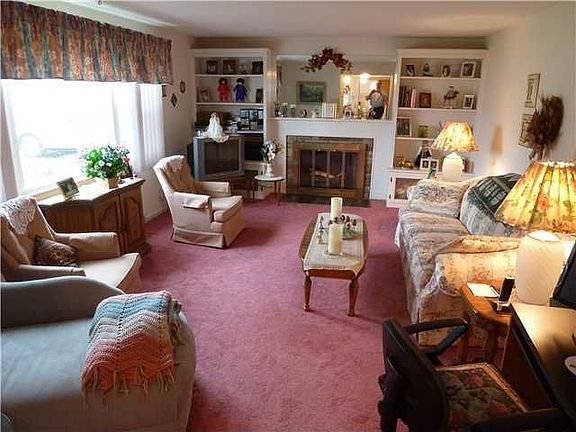 Well cared for 2 bedroom ranch with 2 car garage! Cute kitchen with painted wood cabinets & all appliances! Hardwood floors under the carpet! Living room has a woodburning fireplace and built in bookshelves! New windows in 2008! Master bedroom has 2 closets! Finished basement with woodburning fireplace! Furnace, A/C and roof new in 1995. Back porch roof new in 2005.