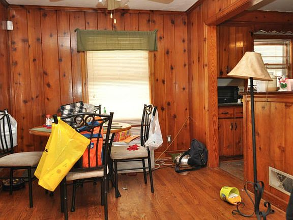 Huge level yard out back; fenced in! Carport & sunroom, pretty hardwood floors, natural wood trim. Brand new sewer line and water line to street. Kitchen opens to dining room. Loads of storage and recreation area in DRY BASEMENT! On a cul-de-sac. GREAT PRICE!