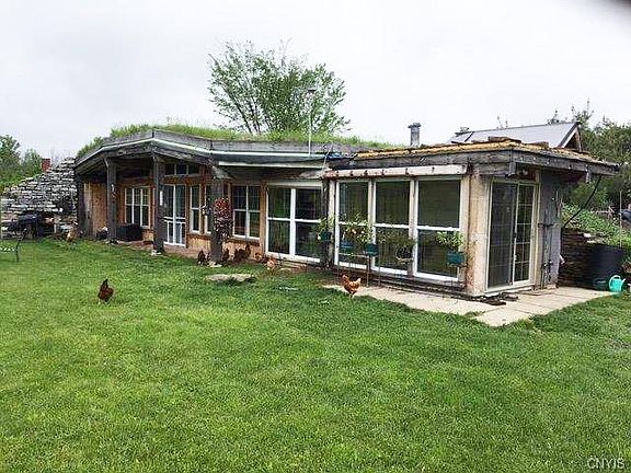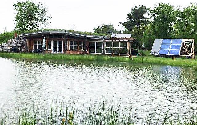 Newly constructed 1,100 square foot Earth home with timber framing, kitchen, bedrooms, bathroom, comfortable den, bedroom with 50 feet of large windows overlooking two large ponds right off the foot of the home loaded with large bass, catfish, perch and bait minnows. Easy off grid living with solar system, wood stove and radiant floor tubing installed should a conventional form of heat be desired. Internal root cellar as well as an ice room for ice storage (currently a pantry). Refrigerator and a freezer which run off their own solar package and a propane gas stove. LED lighting, on demand propane hot water, dry well for sinks and has a composting toilet, built in closets and Murphy bed. 200 ft. drilled well. Home is naturally cool in the summer and stays warm in the winter.