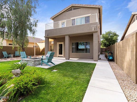 Welcome to 4609 W Cottontail Rd! This home has been absolutely spoiled; custom modern updates, a dreamy backyard, you can control almost everything in the home from an app on your phone, and if you're familiar with this floorplan, you'll notice they even rearranged and opened up the kitchen for prime functionality. This home is the perfect blend of pride in ownership combined with true craftsmanship and beautiful design - you won't see anything like it in the area! Upon entering you'll quickly notice the new modern floor tile throughout, statement light fixtures, custom fireplace design, and a remodeled kitchen with a large peninsula crowned with stunning leather-finished granite countertops. You'll love the open large open concept living space with vaulted ceilings and views of the perfectly manicured and beautifully designed backyard. You will want to spend all you summer nights relaxing and hosting in this yard - custom built stone firepit, tranquil pond, lush grass, covered patio and modern aluminum pergola, even the storage shed is attractive! Everything about this yard screams HGTV! And for all the techies out there - the lights are connected to Alexa, the entry points to the home and thermostat have an app, and the surround sound speakers bring this home to the next level. Upstairs, you'll head straight past the loft reading nook, through the master bedroom, and straight out to the balcony for unobstructed stretching views of the natural desert! Your mornings and evenings will be sprinkled with a little magic as you watch the hot air balloons paint the sky from your master bedroom balcony. The extra large primary suite will not disappoint, and the bathroom updates are exquisite! This home is nuzzled in the highly desirable Anthem Community, in a quite neighborhood with Opportunity Way Park at the end of the street. And let me tell you, these neighbors are as friendly and kind as it gets! The new home owners will receive a warm welcome from this community and the custom upgrades to this home will be the gift that keeps on giving! Come check it out, you won't want to miss out on this one!