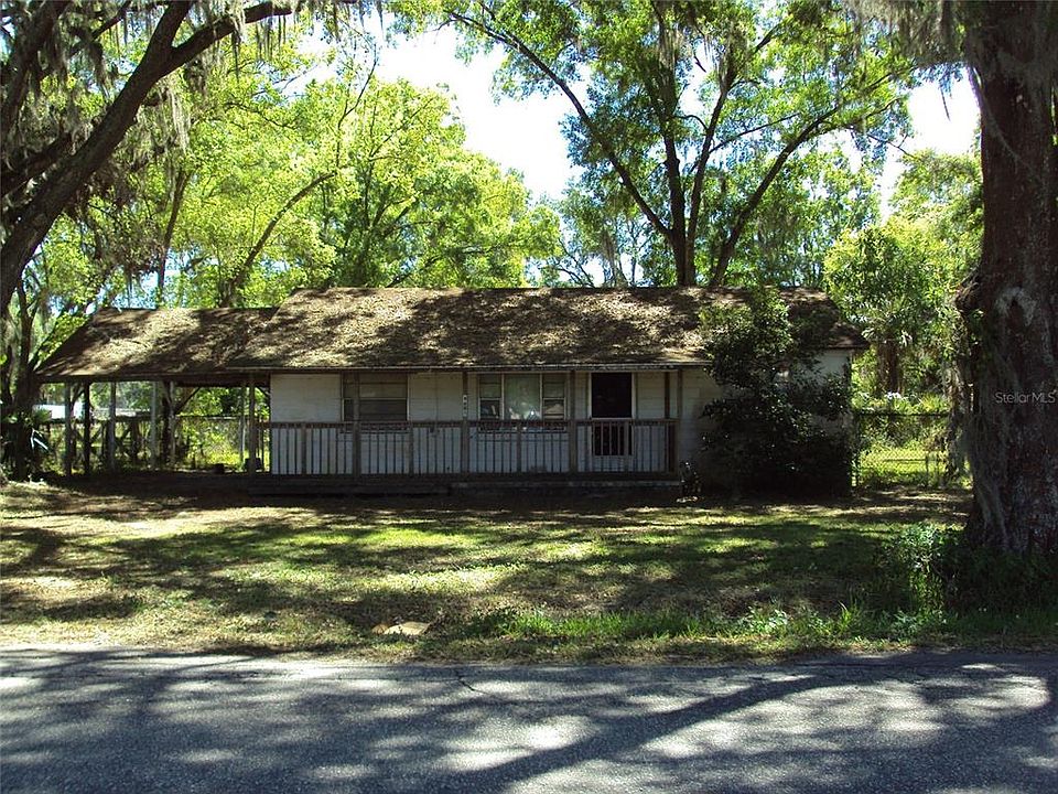 HERE IS YOUR "DIAMOND IN THE ROUGH"! 3/1 BLOCK HOME ON .89 ACRE IN CORK AREA, WITH 1 CAR CARPORT AND COVERED FRONT PORCH. HOUSE NEEDS SOME TLC, ORIGINAL WOOD FLOORS NEED REFINISHING. BACK YARD COMPLETELY FENCED WITH 5 FOOT CHAIN LINK WITH 2 GATES. WAITING IN THE BACK YARD IS A HUGE GARAGE FOR ALL YOUR TOYS OR WORKSHOP ITEMS. 21x20 GARAGE WITH SECOND FLOOR, 2 12ft SIDE OPEN AREAS, FRONT OPEN AREA IS 50ft WIDE & 28ft DEEP. 110 AMP & 220 AMP ELECTRIC. ROUGHLY 50x50 ON CONCRETE ALL UNDER METAL ROOF. 4" WELL 160ft DEEP. HUGE OAK TREES SHADES FRONT & BACK YARD. 10x22 STORAGE/LAUNDRY AREA ON BACK OF HOUSE. PROPERTY NEEDS SOME ATTENTION, BUT COULD BE YOUR BEAUTIFUL HOME WITH SOME WORK!