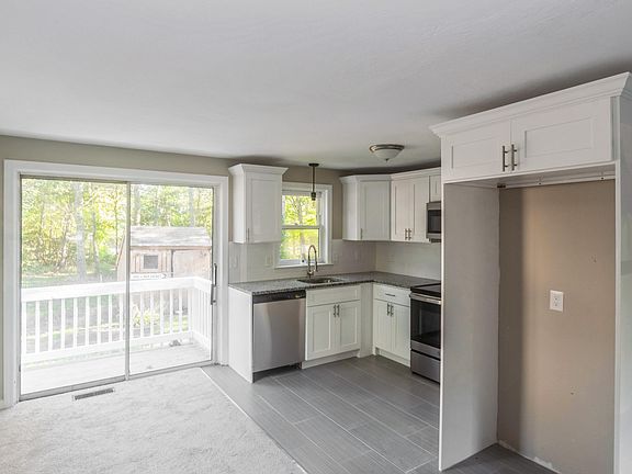 Three bedroom Cape style home with updates from top to bottom. Interior makeover includes new cabinets, granite countertops, and range and dishwasher in kitchen. There is a new vanity and updated tub in bath. Interior has been freshly painted and new vinyl plank floors in kitchen and bath and new carpet throughout rest of home. Other updates include new gas hot air furnace, electrical panel, insulation. Home is located on cul-de-sac with storage shed in yard. Located less than a half mile to junior and high schools and less than two miles to shopping district.