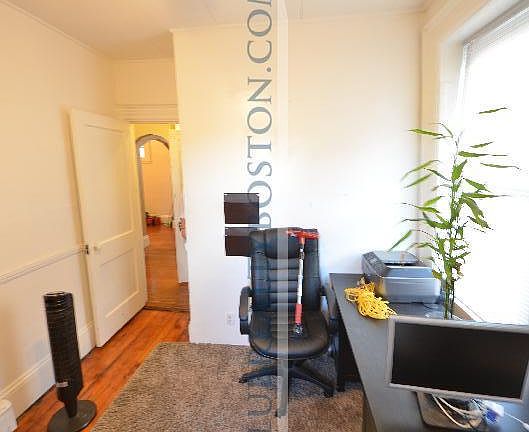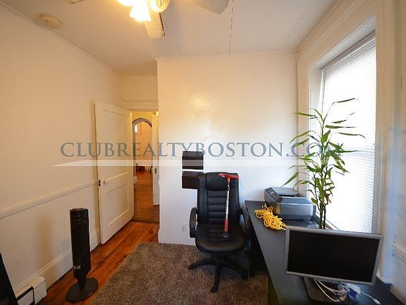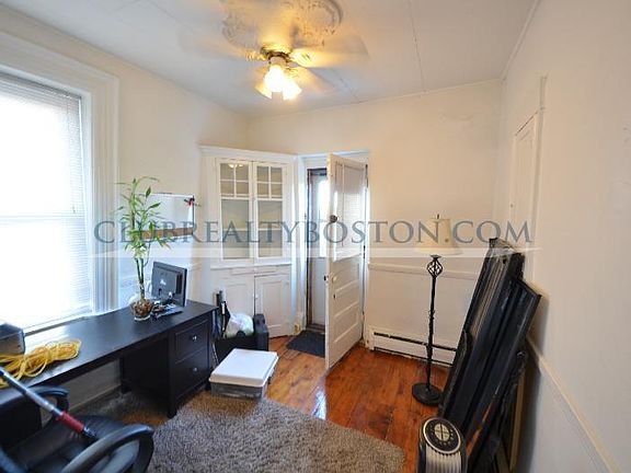 Amazing deal on a one bedroom with a bonus office! Large bedroom with two closets, large sunny living room with bay windows, dishwasher, new light fixtures, hardwood floors throughout, rear porch, and free parking behind the building!