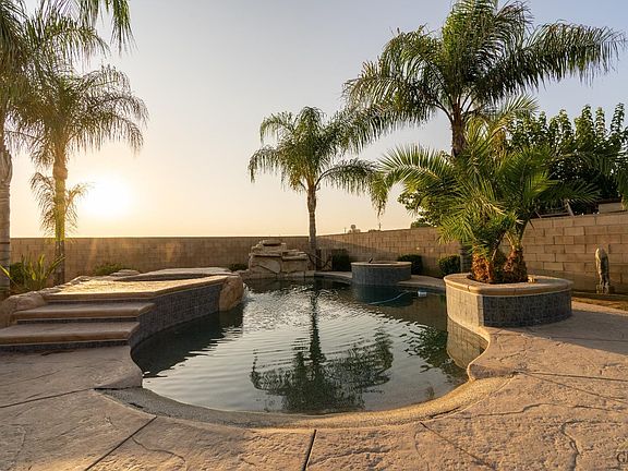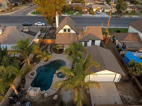 ONE of a KIND Home in Arvin, sitting on a large lot with an In-Ground POOL! This 3 bedroom 2.5 bath home is located in a wonderful community offering all the comforts you need which includes a roomy living room connecting with high vaulted ceilings, an indoor laundry area, detached 2 car garage, and lots of storage throughout. Many of the amenities include; updated woodlike flooring, updated bathrooms with quartz countertops, a beautiful ship lap fireplace in the living room, updated large baseboards, fresh interior & exterior paint, and the list goes on! The cooks delight kitchen was recently upgraded (2022) with white cabinets, beautiful subway tile backsplash, stainless steel appliances, and quartz counter tops! The backyard features a saltwater pebbletech pool, covered patio, easy access to the backyard with a detached 2 car garage. Don't miss out on this great opportunity to live in one of Arvin's greatest streets with a beautiful view to Bear Mountain!