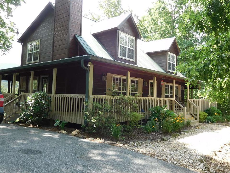 Immaculate home with hallelujah views from the front porch to the back porch year round. Vaulted wood ceilings in the family room and the upstairs loft and bedroom. Upstairs large bedroom has a private balcony with a mountain view. Large loft with mountain views. Vaulted stone fireplace can have both wood and gas fires. Wood floors throughout entire home. Full wraparound porch with freshly stained decking. Front porch has a stone fireplace with gas log. Large screened back porch off of the kitchen. Walkout basement to a fenced back yard with raised garden. Metal roof. The exterior has been freshly stained. Full unfinished basement with built-in shelving, washer dryer hookup. Basement plumbed for bathroom. The main floor bathroom has a commercial stacked washer-dryer. Shows beautifully, priced to sell.