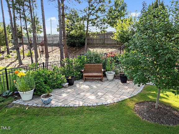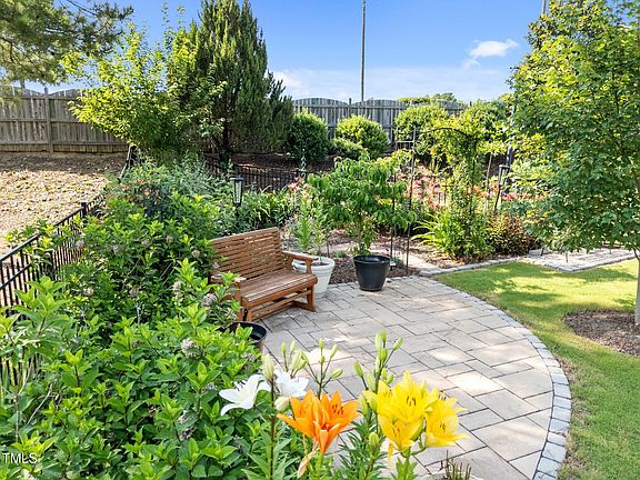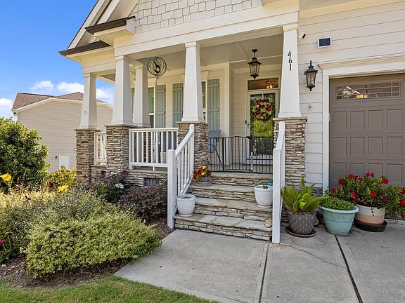 Welcome to 461 Cedar Pond Court, a beautifully maintained ranch-style home located in the Glenmere community, offering a clubhouse, Jr. Olympic pool, tot lot, and scenic walking trails. The beautifully landscaped backyard is a true oasis—lush and vibrant with thoughtfully selected plantings, curated flower garden beds, and blooming perennials. A travertine tile patio with paver-stone border sets the stage for outdoor entertaining, while a stone pathway leads to the rear of the yard where a trellis entry and ground lighting create a peaceful garden retreat. The black aluminum fencing adds definition while still showcasing the landscaping. Inside, you'll find 5-inch hardwood floors throughout the main living areas. The gourmet kitchen features stylish painted cabinetry, a white island with striking ''Thunder White'' granite countertops, a stainless steel single-bowl sink, subway tile backsplash, built-in double trash pull-out, under-cabinet lighting, designer pendant lights, recessed lighting, and stainless steel appliances including a gas range. The primary suite offers crown molding, a ceiling fan, and a spacious walk-in closet with built-ins. The spa-inspired primary bath features tile flooring, a white dual vanity, and a tiled shower with a bench and transom window. The family room includes a ceiling fan and a tile-surround fireplace with a custom mantle, creating a cozy yet elegant gathering space. Upstairs, a large bonus room/teen suite with a full bath provides the perfect flexible space for guests, hobbies, or home office use. Additional storage space is available in the eaves. A tall walk-in crawl space offers even more versatility, with a built-in workbench and file cabinet that will convey—ideal for extra storage or creating your future workshop. Don't miss your chance to experience this stunning home and its exceptional landscaping in person—schedule your visit today!