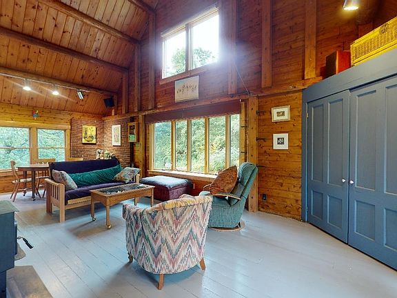 Beautifully restored authentic log home nestled on 2.87 acres on quiet country road in Williston. This 2 bdrm, 2 bath home has many improvements throughout the years incl. SS metal roof, 5.1KW solar panels & hot water, plus central A/C. The large & bright kitchen has plenty of custom Butternut cabinets, ample counterspace and pantry. Vaulted ceilings give an expansive feel to the great room, while the natural wood interior adds a cozy, warm feeling. Large windows in 3 directions look out on private yard & surrounding woods and bring in the sunshine. Enjoy the pellet stove on winter nights watching the snow fall. The loft bedroom has 2 walk-in closets & a private bath w/ soaking tub. Recreation & nature lovers can hike, X-country ski, bike or snowshoe off the back property onto conserved land, with miles of town trails on the mud pond ext trail network. Enjoy your morning coffee, bird watching & gazing over the beautiful perennial cottage gardens and gorgeous stone walls with built-in bench & grill area by master stone mason, David “Stoney” Mason. List of plantings, trees & home improvements provided. The full basement has a bonus room area ready to be finished with its own separate entrance. The 2 Car+ garage w/ 2nd-story access has room to spread out & a full-sized loft ready for storage + other possibilities. A short drive to schools, shopping & restaurants. Easy access to Lake Iroquois, Tafts Corner, Airport, I-89 and Burlington.