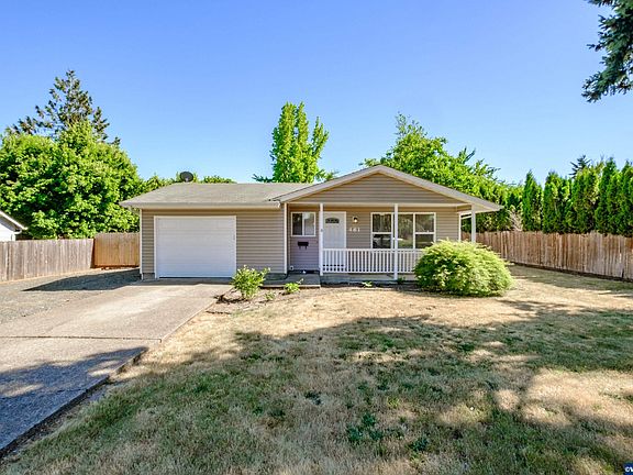 BUDGET-FRIENDLY BUNGALOW well maintained & UPDATED! Charming galley kitchen: counter space, rec. lighting, dbl-basin sink, French door REF, stainless steel DW, Frigidaire “Gallery” stove/micro, pantry. Natural light abounds! Bathrm tub/shower, tri-view mirror+storage. Updates: APPL, cabinets, countertops, flooring, paint, lighting, windows, blinds, front fence/gate, water heater, fin. garage+door, sliding door, FRT UGS, siding. Private, BBQ-ready bkyd w/HUGE deck/patio! Desirable neighborhood, close to WOU.