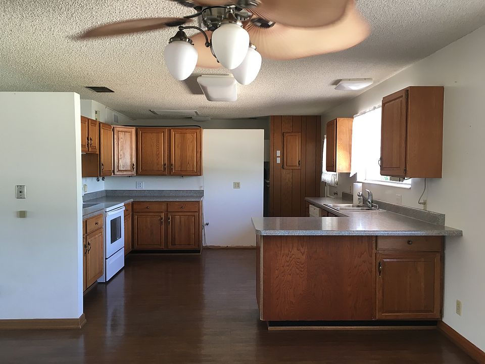 3 Bedrooms 1 full bath 3/4 bath in master, spacious kitchen with a lot of cabinets and counter space, laundry room, water softener, single car garage. Outside there are 2 storage sheds, a greenhouse, sprinkler system, fruit trees ( apple, pear, pomegranate) and gardening areas along with many grapevines..