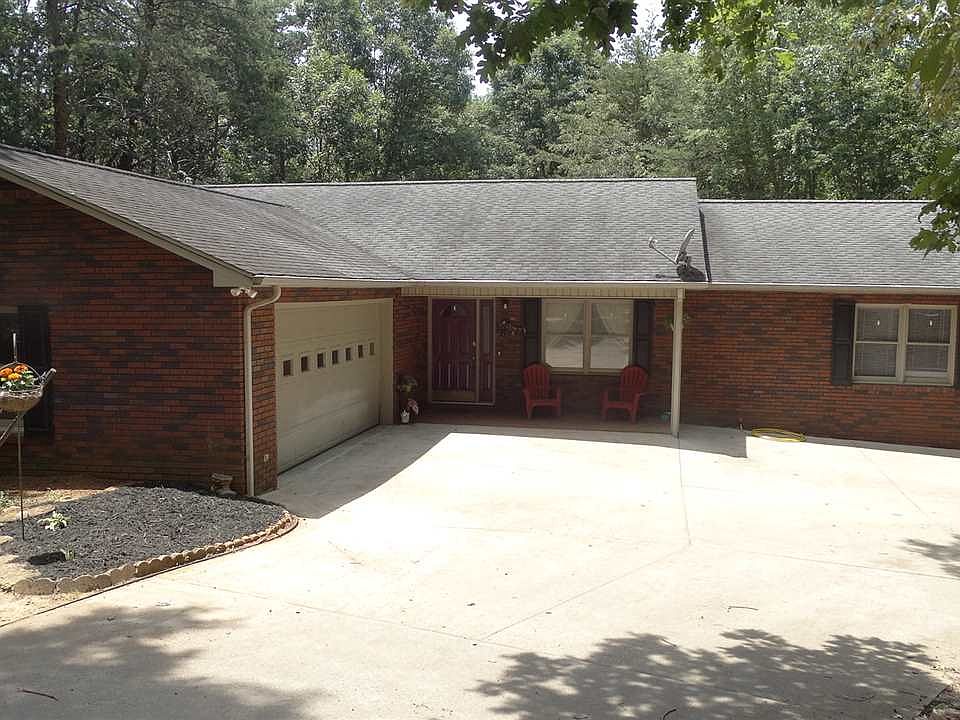 Brick home with open-floor plan features a large bonus room with lots of possibilities. Currently used as an office, it could be a playroom or game room. The living/dining/kitchen area is great for entertaining. The large master suite has walk-in closets, a mirrored area and large bathroom with jetted tub and shower. On the other side of the living area is another bedroom and bath. The kitchen has lots of cabinets with room to display collections. Enjoy breakfast on the island or peninsula. Outside is a private deck for enjoying the outdoors. Just up the circular driveway is a large 30 x 40 building with heating and air, a wood stove, full kitchen and bath plus a sewer hook-up for a large RV. Check out this private setting with a large dog lot area and garden spot.
