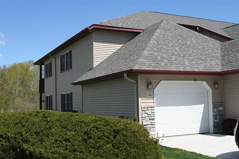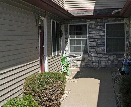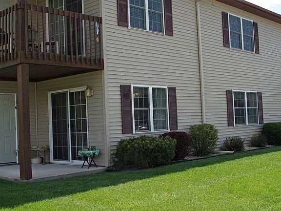 Ground floor, end unit Condo with beautiful view of woods and Maugh's Creek. Kitchen features oak cabinets and open counters to dining/living room. Large entrance area could serve as an office or hobby area. Sit by the gas fireplace in winter and on the patio in summer. Condo Association fees of $110 take care of snow removal and yard work, roof and driveways recently replaced.