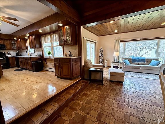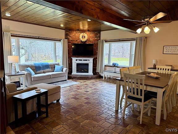Tucked away at the end of a quiet dead-end street, this stunning home sits on a rare double lot, surrounded by mature trees offering unmatched privacy and a peaceful backdrop. Step inside to find a beautifully updated 3-bedroom, 2-bath home featuring a spacious chef’s kitchen with center island, quartz countertops, and warm hardwood floors. The sun-drenched great room with vaulted ceilings and brick fireplace opens to picture windows overlooking the wooded yard. Enjoy cozy evenings in the finished basement with a custom bar and gas fireplace—perfect for entertaining or relaxing. With all new windows, siding, insulation, and a bonus flex room, this home is truly move-in ready and absolutely unforgettable.