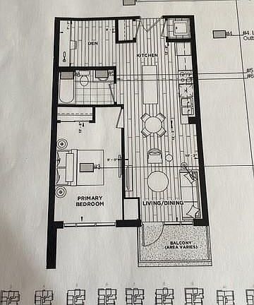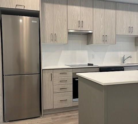 Modern open-conceptLuxury vinyl plank flooringStainless steel appliancesStream-lined islandAdjacent balcony
