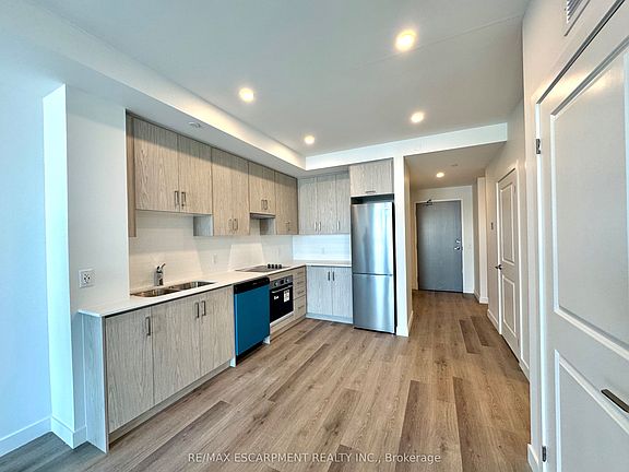 Modern Condo Living with Lake Views - Muse Condominiums, Stoney Creek Welcome to Muse Lakeview Condominiums in vibrant Stoney Creek! This stunning "Ivy" model on the 7th floor features contemporary design, smart-home features, and an unbeatable location just steps from Lake Ontario and the upcoming Confederation GO Station. This 1 bedroom + den, 1 bath suite features 669 sq. ft. of stylish interior living space, plus a 38 sq. ft. private balcony. Enjoy 9' ceilings, luxury vinyl plank flooring, and quartz countertops in both the kitchen and bathroom. The kitchen is complete with upgraded appliance package, backsplash and cabinets. The spacious primary bedroom includes a walk-in closet, and there's convenient in-suite laundry. Smart technology enhances daily living with app-based climate control, digital building access, energy monitoring, and enhanced security. 1 underground parking space and 1 storage locker are included. Exceptional building amenities include a 6th-floor BBQ terrace, chef's kitchen lounge, art studio, media/business room, pet spa, and more. Minutes to Confederation Park, Van Wagners Beach, scenic trails, shopping, dining, major highways, and future transit - this is your chance to lease a premium suite in one of Stoney Creek's most exciting new communities. Move-in Incentive available. Enjoy discounted rent during final building construction period.
